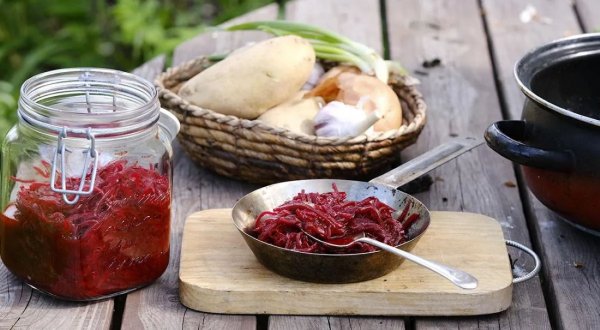 Описание: 🥣 Зажарка для борща со свёклой - на зиму✅ Нужно:🔹 свёкла – 3 кг🔹 лук репчатый – 1 кг🔹 морковь – 1 кг🔹 сладкий перец – 1 кг🔹 помидоры – 1 кг🔹 острый перец – 1 шт.🔹 петрушка – 1 пучок🔹 укроп – 1 пучок🔹 кинза – 1 пучок🔹 растительное масло – 200 г🔹 уксус 9% – 150 мл🔹 сахар – 100 г🔹 соль крупная – 3 ст. л.✅ Готовка🔵 Очистите овощи. Нарежьте лук тонкими полукольцами, сладкий перец – соломкой, свёклу и морковь натрите на тёрке. Помидоры пропустите через мясорубку. Мелко нарежьте зелень.🔵 В сковороде разогрейте немного растительного масла и положите лук. Обжарьте на среднем огне до золотистого цвета.🔵 В большой кастрюле разогрейте оставшееся масло, добавьте морковь и жарьте, помешивая, на среднем огне 10 мин.🔵 Добавьте к моркови обжаренный лук, влейте 0,5 л горячей воды и тушите овощи 15 мин.🔵 Добавьте в кастрюлю свёклу, сладкий перец, стручок острого перца и помидоры и доведите до кипения. Всыпьте сахар и соль, убавьте огонь и готовьте при тихом кипении 45 мин.🔵 Затем добавьте зелень, а ещё через 5 мин влейте уксус и варите ещё 10 мин.🔵 Разложите горячую заправку по стерилизованным банкам, закатайте крышками и поставьте вверх дном. Укутайте банки и оставьте до остывания.🔵 Хранить заправку для борща можно при комнатной температуре 1 год.🔥 НА ЗАМЕТКУ. Готовую зажарку со свеклой и помидорами добавляйте в суп в конце приготовления. Сварите мясной бульон, достаньте и нарежьте мясо, добавьте в суп картофель и капусту, доведите овощи почти до готовности и добавьте эту вкусную зажарку. Доведите борщ до кипения, посолите и поперчите при необходимости, добавьте пару измельчённых зубчиков чеснока, выключите и дайте настояться.🔥 КСТАТИ. Уксус в этом рецепте поможет сохранить яркий малиновый цвет зажарки. Вы можете использовать обычный столовый уксус или любимый ароматный, например, яблочный или винный.