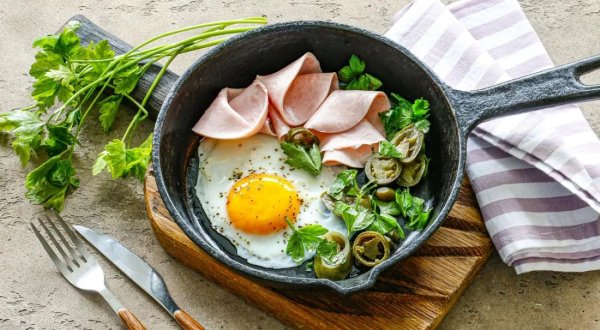 Название: Яичница с ветчиной, маринованным острым перцем и петрушкой