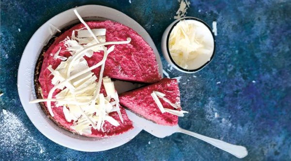 Описание: 🥣 Орехово-свекольный торт✅ Нужно:🔹 90 г миндаля🔹 50 г фиников без косточек🔹 1 ст. л. мёда🔹 1 ст. л. растительного масла🔹 1 ст. л. какао-порошка👉 Для крема:🔹 120 г кешью🔹 1 варёная свёкла🔹 5 ст. л. миндального молока🔹 3 ст. л. мёда🔹 3 ст. л. кокосового масла🔹 0,5 ч. л. ванилина🔹 щепотка соли👉 Для украшения:🔹 50 г тёртого белого шоколада🔹 сахарная пудра✅ Готовка🔵 В чашу блендера положите миндаль, финики, какао-порошок, влейте растительное масло и мёд и пробейте до получения крошки. Выложите в форму диаметром 20-22 см и утрамбуйте.🔵 В блендере взбейте до однородной массы ингредиенты для крема.🔵 Получившийся крем выложите на основу торта, разровняйте и уберите в морозильную камеру на 8 ч.🔵 Осторожно переложите торт на блюдо, подождите, пока он немного оттает. Украсьте тёртым белым шоколадом, посыпьте сахарной пудрой и подавайте.