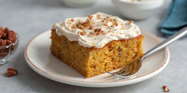 Описание: 🥣 Воздушный тыквенный пирог с орехами и пряностями✅ Нужно:👉 Для теста:🔹 Мука – 250 г🔹 Разрыхлитель – 1 ч. ложка🔹 Сода – 1 ч. ложка🔹 Корица молотая – 1 ч. ложка🔹 Имбирь молотый – 1 ч. ложка🔹 Мускатный орех молотый – ¼ ч. ложки🔹 Яйца – 4 штуки🔹 Соль – 1 щепотка🔹 Сахар – 250 г🔹 Ванильный сахар – 10 г🔹 Растительное масло – 200 мл🔹 Тыквенное пюре – 400 г🔹 Грецкие орехи – 150 г👉 Для крема:🔹 Сливочное масло – 70 г🔹 Сахарная пудра – 50 г🔹 Ванильный сахар – 10 г🔹 Крем-сыр – 180 г✅ Готовка🔵 Муку просейте в глубокую миску, добавьте разрыхлитель, соду, корицу, имбирь и мускатный орех. Перемешайте.🔵 В другой миске соедините яйца, соль, сахар (обычный и ванильный), растительное масло и тыквенное пюре. Взбейте венчиком до однородности.🔵 Порциями вмешайте к жидким ингредиентам сухие, замесите тесто.🔵 Порубите грецкие орехи и добавьте в тесто. Часть орехов оставьте для украшения.🔵 Выложите тесто в форму, застеленную пергаментом, и выпекайте в заранее разогретой до 180 °С духовке 35 минут.🔵 Достаньте пирог из духовки и остудите.🔵 Приготовьте крем. Для этого соедините размягчённое сливочное масло, сахарную пудру и ванильный сахар. Взбейте миксером.🔵 Порциями введите крем-сыр, продолжая взбивать.🔵 Распределите крем по остывшему пирогу и украсьте оставшимися орехами.