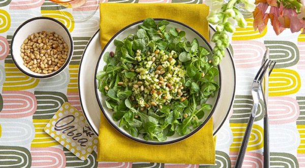 Описание: 🥣 Зелёный салат с тартаром из цукини✅ Нужно:🔹 молодой цукини – 2 шт.🔹 салат корн – 200 г🔹 сок и цедра 1 лайма🔹 оливковое масло🔹 тархун – 2 веточки🔹 кедровые орехи – 1 горсть🔹 хлопья морской соли✅ Готовка🔵 Чтобы приготовить зелёный салат со свежим цукини, нарежьте цукини мелкими кубиками (2 мм). Посолите цукини, полейте соком лайма и смешайте его с цедрой лайма. Сбрызните оливковым маслом и оставьте на 10 мин.🔵 Пока цукини маринуется, у веточек тархуна удалите стебли, листочки мелко порубите и смешайте с цукини.🔵 Разложите по тарелкам салат корн. В центр каждой тарелки выложите тартар из цукини, посыпьте обжаренными кедровыми орехами, сбрызните оливковым маслом и посыпьте хлопьями соли.🔥 НА ЗАМЕТКУ. Салат корн имеет приятный ореховый привкус, поэтому любые орехи в салате с тартаром из цукини будут кстати - подойдут и грецкие, и миндаль. Подойдёт и арахис. Пробуйте разные варианты на свой вкус.🔥 КСТАТИ. Витаминов в свежем цукини едва ли не больше, чем в кабачках. Кроме того, у цукини более яркий насыщенный вкус в отличие от «старшего брата». Но при желании вы можете организовать замену в рецепте одного овоща другим, хотя даже молодые кабачки у нас почему-то не принято есть в свежем виде.
