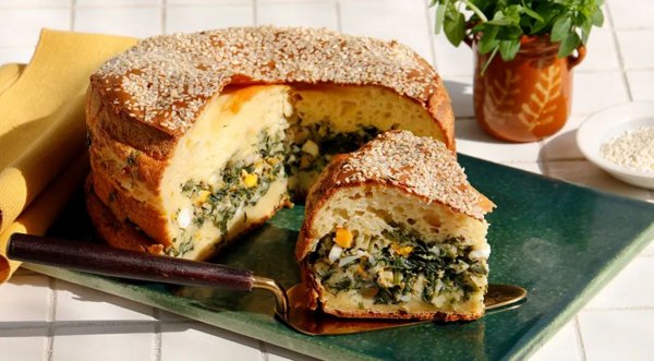 Описание: 🥣 Быстрый заливной пирог с зеленью✅ Нужно:👉 Для начинки:🔹 4 яйца, сваренных вкрутую🔹 150 г смеси зелени по вкусу🔹 30 г масла сливочного, растопленного🔹 соль, чёрный молотый перец👉 Для теста:🔹 300 г муки🔹 7 г соли🔹 10 г разрыхлителя🔹 5 г соды🔹 240 г яиц (4 шт. категории СО)🔹 300 г кефира🔹 200 г сметаны жирностью 10–15%👉 Дополнительно:🔹 сливочное масло для подготовки формы🔹 семена кунжута✅ Готовка🔵 Разогрейте духовку до 170С. Неразъёмную форму для выпечки диаметром 22-24 см с бортиками высотой не менее 3,5 см смажьте сливочным маслом.🔵 Для начинки нарежьте зелень, измельчите сваренные вкрутую яйца. Добавьте растопленное сливочное масло и перемешайте. Приправьте солью и перцем.🔵 В миске смешайте венчиком муку, соль, соду и разрыхлитель. Добавьте яйца, кефир и сметану. Ложкой или силиконовой лопаткой замесите тесто. Оно будет напоминать тесто на оладьи.🔵 Перелейте половину теста в форму, разровняйте. Поверх распределите начинку и залейте оставшимся тестом. Посыпьте поверхность кунжутом.🔵 Выпекайте пирог примерно час. Готовность проверьте деревянной палочной. Пирог готов, если вставленная в центр пирога шпажка выходит сухой и чистой.🔵 Остудите пирог в форме на решётке 15-20 минут, затем пройдитесь ножом вдоль бортиков формы и переверните пирог на доску. Накройте тарелкой или блюдом и переверните ещё раз.🔥 НА ЗАМЕТКУ. Такое тесто, как и тесто на оладьи или маффины, не следует вымешивать до гладкости. Пытаясь разбить все комочки, вы чрезмерно развиваете клейковину, и готовый пирог получится плотным и «резиноватым».🔥 КСТАТИ. Начинка для заливного пирога может быть из комбинации самой разной зелени, но можно ограничиться, например, зелёным луком или шпинатом. Напомним также, что яйца желательно приправить чёрным перцем. Он очень украсит блюдо.