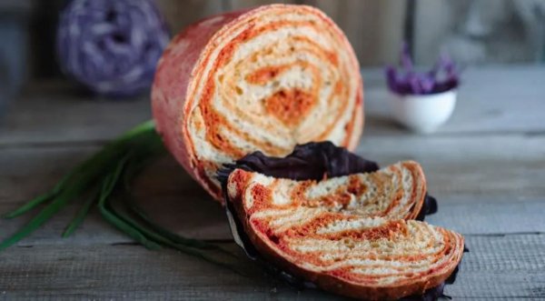 Описание: 🥣 Гипно-свекольный хлеб📌 Нужно🔹 500 г муки пшеничной🔹 2 ч.л. сухих быстродействующих дрожжей🔹 140 г питьевой воды🔹 140 г свекольного сока🔹 40 г растительного масла🔹 8 г соли🔹 10 г сахара🔹 1 ч. л. молотого кориандра или можно добавлять разные пряности по вкусу🔹 0,5 ч. л. лимонной кислоты🔹 1 яичный желток📌 Готовка🔷 Для этого хлеба нужно сделать два теста, белое и красное. Первым делом надо отжать сок из свёклы и добавить в него лимонную кислоту, для лучшего удержания цвета при выпечке.🔷 Для белого теста, в 250 гр. просеянной муки всыпать одну чайную ложку дрожжей и хорошо перемешать. Далее добавить всю воду, 20 гр. растительного масла и 4 гр. соли. Замесить мягкое тесто 5 минут. Накрыть плёнкой и поставить в тёплое место подниматься в течении 60 минут.🔷 Для красного теста, в 250 гр. просеянной муки всыпать одну чайную ложку дрожжей и хорошо перемешать. Далее добавить свекольный сок(можно со жмыхом), 20 гр. растительного масла , 4 гр. соли, сахар и кориандр . Замесить мягкое тесто 5 минут. Накрыть плёнкой и поставить в тёплое место подниматься в течении 60 минут.🔷 Обмять поднявшиеся и белое, и красное тесто. Сформовать каждое в колбаску толщиной примерно 5 см, накрыть плёнкой. Разделить белое тесто на 5 частей, а красное на 10 частей. Будем делать капустные листы. Всего листов будет 5.🔷 Взять один белый кусок теста и два красных. Раскатать все кусочки по отдельности и потом плотно уложить друг на друга, хорошо прижав, в последовательности: красный-белый-красный - это и будет первый капустный лист. Скрутить его в рулет длиной примерно 10 см. Этот рулет обернуть следующим листом, защепив края, как пирожок и так каждый лист. Каждый следующий лист должен быть чуть тоньше предыдущего. В итоге должна получиться овальная тестозаготовка похожая на кочан капусты. Формовать в зависимости от того как или в чём планируете выпекать. Можно выпекать как в форме, так и без неё.🔷 Накрыть пакетом и оставить расстаиваться на 50 минут. Перед отправкой в печь смазать хлеб яичным желтком. Выпекать при 180 °С в течении 45-50 минут. Остудить на решётке.