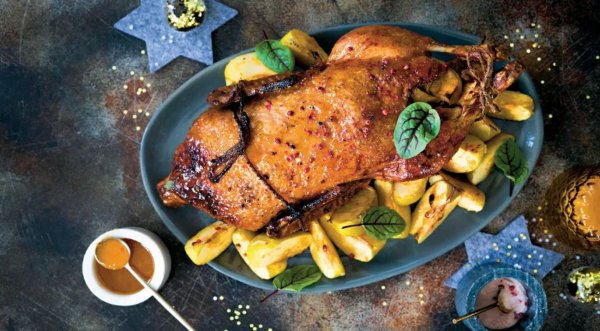 Описание: 🥣 Утка с яблоками📌 Нужно🔹 тушка утки весом около 2,5 кг – 1 шт.🔹 чеснок – 4 зубчика🔹 лимонный сок – 2 ст. л.🔹 мёд – 2 ст. л.🔹 растительное масло – 4 ст. л.🔹 зелёные яблоки – 7-8 шт.🔹 тимьян – 2-3 веточки🔹 соль, молотый чёрный перец – по вкусу📌 Готовка🔷 Подготовьте все ингредиенты блюда. Тушку утки вымойте и срежьте лишний жир, затем хорошо обсушите бумажными полотенцами. Чеснок очистите и пропустите через пресс.🔷 В миску налейте лимонный сок, затем перемешайте его с мёдом и растительным маслом. Добавьте чеснок, пропущенный через пресс, посолите, поперчите и перемешайте.🔷 Получившейся чесночно-масляной смесью смажьте тушку утки. Переложите в миску или кастрюлю подходящего размера, затяните плёнкой и оставьте мариноваться в течение часа при комнатной температуре.🔷 Духовку нагрейте до 150°C. Яблоки вымойте, хорошо обсушите и разрежьте на четвертинки. Из каждой удалите семена. Мякоть яблок нарежьте тонкими ломтиками.🔷 Утку достаньте из миски. Поместите в брюшко веточки тимьяна и 6-8 ломтиков яблок. Отверстие зашейте кулинарной нитью или скрепите маленькими деревянными шпажками.🔷 Уложите тушку утки спинкой вниз в жаропрочную форму. Влейте около 150 мл горячей питьевой воды. Накройте фольгой и запекайте 1 час. Затем нагрев духовки увеличьте до 180°C. Фольгу снимите. Вокруг утки разложите оставшиеся яблоки, полейте жидкостью из формы и запекайте около 30 минут.🔥 НА ЗАМЕТКУ. Дело это совсем не хитрое, поэтому с процессом справится даже не слишком опытный кулинар. И обязательно подберите хорошую жаропрочную форму правильного размера: утка должна в ней располагаться свободно. Не стоит забывать и о том, что ёмкость должна иметь высокие бортики, то есть, обычный противень в данном случае не подойдёт.🔥 КСТАТИ. Время приготовления утки в духовке напрямую зависит от веса тушки. Поэтому рассчитывайте его правильно. Птица весом 2-3 кг готовится 1-1,5 часа, 4-5 кг — 2-2,5 часа, 5-6 кг — 2-3 часа. Определить готовность утки с яблоками поможет специальный термометр. Воткните его в самую толстую часть грудки или бедра и дождитесь результата: температура полностью прожаренной птицы должна быть в пределах 65-70°C.