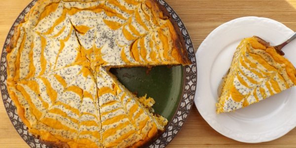 Описание: 🥣 Творожная запеканка «Зебра» с тыквой и маком📌 Нужно🔹 Тыква очищенная – 1 кг🔹 Мак – 1-2 ст. ложки🔹 Сахар – 180 г🔹 Яйца – 4 штуки🔹 Кукурузный крахмал – 2 ст. ложки с горкой🔹 Творог – 500 г🔹 Растительное масло – 1 ст. ложка👉 Можно добавить:🔹 Сметана или молоко – по вкусу📌 Готовка✔️ Тыкву нарежьте средними кусочками. Сложите в форму, накройте фольгой и запекайте 30-40 минут при 180 °С. После раскройте и оставьте в духовке ещё на 10-15 минут. Остудите. 🔥 Время запекания может немного меняться в зависимости от размера кусочков и особенностей вашей духовки.✔️ Мак залейте кипятком и оставьте на 15-20 минут. Слейте всю жидкость.✔️ Измельчите тыкву погружным блендером. Добавьте 80 г сахара, 2 яйца и половину крахмала. Взбейте ещё раз.✔️ Творог соедините с оставшимся сахаром, яйцами и крахмалом при помощи блендера. Добавьте мак и перемешайте. 🔥 Если масса слишком густая, добавьте в неё немного сметаны или молока и взбейте ещё раз.✔️ Форму для запекания смажьте маслом. В центр выложите столовую ложку творожной массы, поверх неё — столько же тыквенной. Продолжайте, пока не используете все ингредиенты.✔️ В центр формы вставьте деревянную шпажку и, не отрывая от дна, проведите ей до стенки формы. Таким же образом сделайте ещё несколько штрихов, чтобы получился рисунок. 🔥 Этот шаг можно пропустить, тогда запеканка будет просто полосатой внутри.✔️ Отправьте запеканку в разогретую до 180 °С духовку на 30-35 минут.