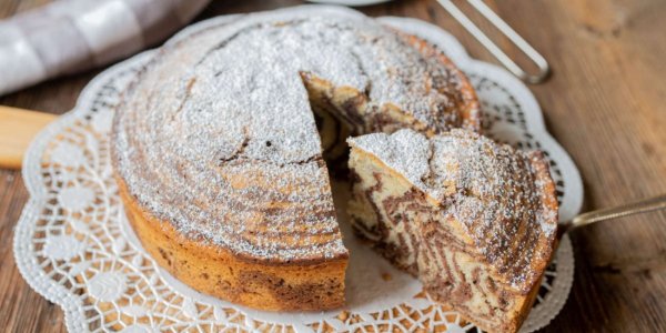 Описание: 🥣 Пирог «Зебра» на сметане📌 Нужно🔹 Сливочное масло – 100 г + для смазывания🔹 Сметана любой жирности – 100 г🔹 Сода – ⅔ ч. ложки🔹 Яйца – 3 штуки🔹 Соль – 1 щепотка🔹 Сахар – 145 г🔹 Мука – 210 г + для посыпки🔹 Какао-порошок – 20 г📌 Готовка✔️ Разогрейте духовку до 180 °C. Форму для выпечки диаметром около 20 см смажьте маслом. Дно застелите пергаментом, а стенки присыпьте мукой.✔️ Растопите и остудите до комнатной температуры сливочное масло. Смешайте сметану и соду.✔️ Взбейте миксером яйца, соль и сахар до образования пены. Добавьте масло и сметану, введите 190 г муки.✔️ Разделите тесто пополам. В одну часть вмешайте какао-порошок, а в другую — ещё 20 г муки.✔️ В центр формы выложите 2 столовые ложки светлого теста, а на него — столько же шоколадного. Продолжайте чередовать слои.✔️ Выпекайте пирог около 40 минут до румяности. Готовность проверьте зубочисткой: она должна остаться чистой.🔥 При подаче можно посыпать сахарной пудрой или полить шоколадом.