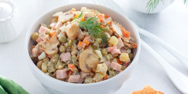 Описание: 🥣 Оливье с колбасой и маринованными шампиньонами📌 Нужно🔹 Картофель – 4 штуки🔹 Морковь – 1 штука🔹 Яйца – 4 штуки🔹 Колбаса варёная – 200 г🔹 Огурцы солёные – 3 штуки🔹 Шампиньоны маринованные – 200 г🔹 Горошек зелёный консервированный – 6 ст. ложек🔹 Майонез – 150 г🔹 Соль – по вкусу🔹 Перец чёрный молотый – по вкусу📌 Готовка✅ Картофель и морковь отварите в мундире. Яйца отварите вкрутую.✅ Овощи и яйца остудите, очистите и нарежьте кубиком вместе с колбасой и огурцами. А маринованные шампиньоны — покрупнее.✅ Смешайте картофель, морковь, яйца, колбасу, огурцы и шампиньоны. Добавьте горошек и заправьте салат майонезом. Посолите и поперчите по вкусу.