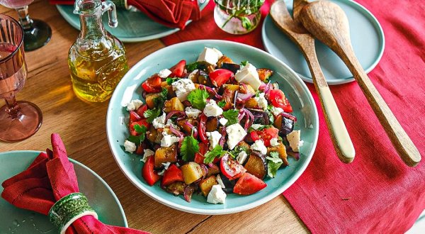 Описание: 🥣 Тёплый салат с баклажанами и помидорами📌 Нужно✔ Баклажан – 3 шт.✔ Томат (помидор) – 2 шт.✔ Лук красный – 2 шт.✔ Имбирь – 20 г✔ Чеснок – 4 зубчика✔ Кинза – 4 веточки✔ Брынза болгарская – 150 г✔ Соус терияки – 2 ст.л.✔ Масло растительное рафинированное – по вкусу✔ Соль – по вкусу✔ Перец чёрный молотый – по вкусу📌 Готовка➤ Подготовьте все ингредиенты для тёплого салата. Очистите имбирь, чеснок и лук. Имбирь натрите на мелкой тёрке, чеснок измельчите, а красный лук нарежьте тонкими перьями.➤ Баклажаны нарежьте кубиками со стороной 2,5-3 см, порциями обжарьте на растительном масле на сильном огне. Переложите в миску, добавьте соус терияки, перемешайте, накройте крышкой, сохраняйте в тепле.➤ В сковороду долейте немного масла и быстро обжарьте лук, чеснок и имбирь. Переложите к баклажанам.➤ Помидоры нарежьте кубиками. Кинзу мелко порубите. Брынзу раскрошите. Добавьте кинзу и помидоры к баклажанам, посолите, поперчите, перемешайте и подавайте салат, посыпав брынзой.❗ НА ЗАМЕТКУ. Тёплый салат с баклажанами и помидорами следует подавать сразу. Дело в том, что уже через некоторое время жареные овощи станут мягкими, и текстура блюда станет менее интересной.❗ КСТАТИ. Тёплый салат с баклажанами и помидорами можно готовить не только с кинзой, как предложено в рецепте, но и мелко нарезанным тархуном: получится очень оригинально.