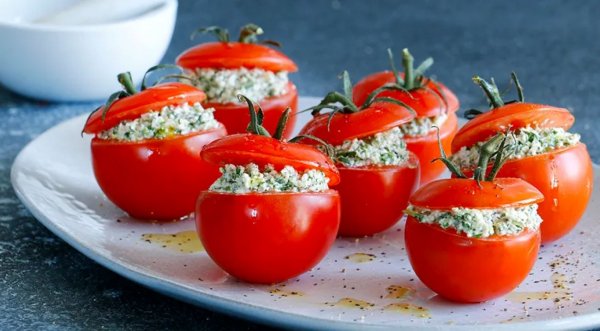 Название: Помидоры, фаршированные острым творогом, зеленью и чесноком