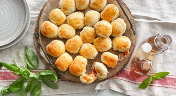 Описание: 🥣 Пицца «Бомбочки»✅ Нужно⇨ Тесто слоёное дрожжевое – 500 г⇨ Колбаса пепперони – 360 г⇨ Сыр Моцарелла – 150 г⇨ Базилик свежий – 10 г⇨ Соус томатный – 10 ч.л.⇨ Сливки 35% (жирные) – 2 ст.л.✅ Готовка➦ Включите духовку для разогрева до 200 °С. Застелите дно большой круглой формы пергаментом. Бока изнутри смажьте маслом.➦ Немного раскатайте тесто и вырежьте из него небольшим стаканчиком 18 кружков.➦ Нарежьте сыр на 18 условных кубиков.➦ В центр каждого кружка кладите 1 кружок пепперони/чоризо, листочек базилика, снова кружочек колбасы, затем кусочек сыра. Кладите лепёшку себе на ладонь, приподнимайте края и аккуратно капайте в начинку 0,5 ч. л. томатного соуса или даже чуть меньше.➦ Тщательно защипывайте края, чтобы получился немного сплюснутый шарик и кладите в подготовленную форму довольно близко друг к другу. Накройте плёнкой и дайте расстояться 20 мин.➦ Смешайте 1 ч. л. томатного соуса со сливками или маслом. Обмажьте этой смесью сырные бомбочки. Выпекайте в центре духовки 20-25 мин. Остудите, 5-7 мин. и подавайте.❗ НА ЗАМЕТКУ. Подавайте пиццу в шариках в горячем виде, выложив на деревянный поднос. Можно украсить их свежими листьями базилика. Подавать, как закуску, на фуршетный стол или в качестве главного блюда на небольшой вечеринке. При желании можно дополнительно приготовить к ним соус для макания (хотя они внутри сочные).❗ КСТАТИ. Внутри такой пиццы в шариках может быть совершенно любая начинка. Попробуйте, например, такие варианты: сыр с курицей и песто или моцарелла с голубым сыром и грушей. Готовьте любые пиццы «бомбочки» по технологии, описанной в этом рецепте.