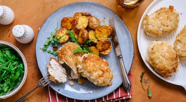 Описание: 🥣 Пожарские котлеты из курицы✅ Нужно⇨ 720 г куриного филе (грудка)⇨ 30 г сливочного масла + для жарки⇨ 180 г репчатого лука⇨ 60 мл сливок жирностью 30%⇨ 30 мл молока⇨ 70 г пшеничного нарезного батона⇨ соль, молотый чёрный перец✅ Готовка➦ Куриное филе и лук пропустите через мясорубку. Добавьте размягчённое сливочное масло, сливки, молоко. Приправьте солью и перцем.Тщательно вымешайте фарш. Уберите до использования в холодильник.➦ У батона срежьте корку. Хлеб нарежьте небольшими кубиками.➦ Фарш разделите на 6 частей. Сформируйте из каждой котлету овальной формы. Обваляйте её в хлебных кубиках.➦ В сковороде прогрейте сливочное масло. Обжарьте с двух сторон по 2 мин. Переложите в жаропрочную форму и запекайте до полной готовности в духовке при 180 °С, 10 мин. Подавайте горячими.❗ НА ЗАМЕТКУ. Если у вас есть сковородка со съёмной ручкой, не перекладывайте обжаренные котлеты в форму, а ставьте их в духовку прямо в ней. Отлично подойдет большая чугунная сковородка или тяжёлая сковородка из нержавеющей стали. ❗ КСТАТИ. Для того, чтобы нарезать хлеб мелкими аккуратными кубиками, лучше использовать вчерашний батон. Если у вас под рукой есть только свежий хлеб, уберите его ненадолго в морозильную камеру. Нарезать подмороженные ломтики очень легко!