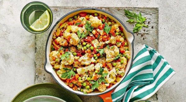 Описание: 🥣 Тушёная цветная капуста с овощами✅ Нужно⇨ кочан цветной капусты – 1 шт.⇨ морковь среднего размера – 2 шт.⇨ крупный стебель сельдерея – 1 шт.⇨ репчатая луковица – 1 шт.⇨ чеснок – 2 зубчика⇨ консервированные помидоры – 200 г⇨ оливковое масло – 2 ч. л.⇨ сушёные итальянские травы – 1/2 ч. л.⇨ замороженный зелёный горошек – 200 г⇨ овощной бульон – 400 мл⇨ питьевая вода – 500 мл⇨ петрушка – 30 г⇨ соль, молотый чёрный перец✅ Готовка➦ Подготовьте все овощи. Кочан цветной капусты почистите и разделите на мелкие соцветия. Морковь тщательно вымойте и очистите. Нарежьте маленькими кубиками.➦ Стебель сельдерея вымойте, почистите и нарежьте ломтиками. Лук и чеснок очистите. Лук нарежьте маленькими кубиками, чеснок раздавите плоской стороной ножа и порубите. Помидоры мелко нарежьте.➦ В большой сковороде (сотейнике) нагрейте оливковое масло. Положите овощи — лук, сельдерей и морковь. Помешивая, подрумяньте на среднем огне в течение 2-3 минут.➦ Добавьте чеснок и сушёные итальянские травы. Перемешайте и прогрейте в течение 1 минуты. Положите зелёный горошек. Влейте горячие бульон и воду. Доведите до кипения.➦ Тушите овощи 5 минут на среднем огне. Затем добавьте соцветия капусты и перемешайте содержимое сковороды (сотейника). Тушите около 15 минут без крышки.➦ Петрушку вымойте, обсушите и оборвите с веточек листочки. Мелко нарежьте, затем добавьте к овощам вместе с помидорами. Посолите и поперчите по вкусу. Тушите 5 минут.❗ НА ЗАМЕТКУ. Тушёная цветная капуста с овощами — лёгкое питательное блюдо, богатое легкоусвояемой клетчаткой, которая необходима для правильной работы пищеварения и выведения вредных веществ из организма.❗ КСТАТИ. Тушёную цветную капусту можно готовить не только с консервированными помидорами, но и со свежими — самыми спелыми и мясистыми. В этом случае плоды лучше очистить. Для этого надрежьте их крест-накрест и опустите в кипящую воду на 1 минуту. Затем выньте шумовкой и легко удалите кожицу.