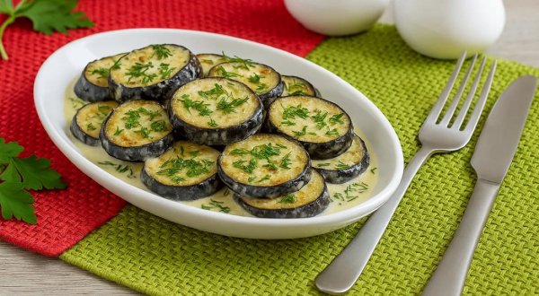 Описание: 🥣 Баклажаны, тушенные в сметане✅ Нужно⇨ Баклажаны – 500 г⇨ Сметана 18% – 200 г⇨ Чеснок – 4 зубчика⇨ Масло растительное рафинированное – 3 ст.л.⇨ Мука пшеничная – 2 ст.л.⇨ Соль – 1 ч.л.⇨ Перец чёрный молотый – 1/2 ч.л.⇨ Укроп – 1 веточки✅ Готовка➦ Подготовьте баклажаны: тщательно промойте, срежьте плодоножки и нарежьте кружочками толщиной 1 см. Если кожура жёсткая, можно частично очистить. Посолите ломтики и оставьте на 15 минут — это уберёт горечь. Затем промойте и обсушите бумажным полотенцем. ➦ Разогрейте сковороду с маслом на среднем огне. Обваляйте баклажаны в муке и обжаривайте по 3-4 минуты с каждой стороны до золотистого цвета. Не перегружайте сковороду — лучше жарить партиями. ➦ Приготовьте чесночно-сметанный соус. В отдельной миске смешайте сметану, пропущенный через пресс чеснок, соль и перец. Для более нежной текстуры можно добавить 2 ст. л. воды или молока. ➦ Уменьшите огонь до минимума. Верните все обжаренные баклажаны в сковороду и равномерно залейте сметанной смесью. Накройте крышкой и тушите 7-10 минут, чтобы соус пропитал овощи. ➦ Мелко нарежьте укроп или петрушку. За 2 минуты до готовности посыпьте баклажаны в сметане с чесноком на сковороде измельчённой зеленью и аккуратно перемешайте. ➦ Снимите сковородку с огня и накройте крышкой на 5-7 минут — так вкус баклажанов, тушенных в сметане, станет ещё гармоничнее, а соус приятно загустеет. ➦ Выложите баклажаны в сметане на тарелки, полейте сверху соусом и подавайте. Отличным дополнением к ним может стать нежное картофельное пюре или свежий хлеб. ❗ НА ЗАМЕТКУ. Для пикантности добавьте в соус для баклажанов в сметане ½ ч. л. сладкой паприки или щепотку мускатного ореха. Если сметана слишком густая, разбавьте её 2 ст. л. бульона — соус станет нежнее и лучше пропитает баклажаны. ❗ КСТАТИ. Если вы решили опробовать рецепт баклажанов в сметане, ловите ещё пару лайфхаков. Чтобы баклажаны не впитывали много масла, перед жаркой слегка сбрызните их лимонным соком. А для хрустящей корочки вместо муки можно использовать кукурузный крахмал.