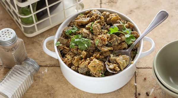 Описание: 🥣 Баклажаны «как грибы»✅ Нужно⇨ некрупные баклажаны – 4 шт.⇨ репчатый лук – 2 шт.⇨ яйца – 2–3 шт.⇨ растительное масло для жарки – 3-5 ст. л.⇨ грибной бульонный кубик – 1 шт.⇨ молотый чёрный перец✅ Готовка➦ Баклажаны очистите от кожицы, нарежьте кубиками со стороной 2 см, переложите в большую миску или в кастрюлю. Яйца взбейте венчиком, влейте в миску с баклажанами, перемешайте, накройте крышкой.➦ Оставьте баклажаны при комнатной температуре на 1 час. За это время несколько раз перемешайте. Грибной бульонный кубик раскрошите. Лук мелко нарежьте. В сковороде нагрейте растительное масло, положите баклажаны, обжарьте, помешивая, со всех сторон.➦ Добавьте лук, перемешайте, продолжайте обжаривать на среднем огне, 3 минуты. Посыпьте раскрошенным бульонным кубиком. Поперчите по вкусу.➦ Готовьте баклажаны на среднем огне ещё 2 минуты. Снимите с плиты, дайте настояться в течение 5 минут, затем разложите по тарелкам. Перед подачей можно посыпать измельчённой зеленью по вкусу.