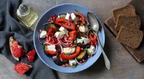 Описание: 🥣 Баклажаны с гранатовым соусом✅ Нужно⇨ крупные баклажаны – 3 шт.⇨ крупные красные сладкие перцы – 2 шт.⇨ несолёная брынза – 200 г⇨ маленький красный лук – 1 шт.⇨ сок 1 лимона⇨ молотая корица – 1/2 ч. л.⇨ оливковое масло👉 Для заправки:⇨ оливковое масло – 6 ст. л.⇨ гранатовый соус наршараб – 2 ст. л.⇨ чеснок – 2 зубчика⇨ семена зиры – 1 ч. л.⇨ соль, молотый чёрный перец👉 Для подачи:⇨ мята — 3 веточки✅ Готовка➦ Нарежьте баклажаны кружками 2 см толщиной. Смажьте маслом, посыпьте солью и корицей. Запеките на углях до золотистой корочки, часто переворачивая.➦ Сладкие перцы разрежьте вдоль на четвертинки. Запеките на углях кожицей вниз до почернения, переложите в пакет, плотно завяжите и оставьте на 10 минут.➦ Очистите перцы от кожицы, нарежьте узкими полосками. Брынзу нарежьте ломтиками, лук — толстыми перьями. Сбрызните лук лимонным соком.➦ Для заправки раздавите и измельчите чеснок. Соедините чеснок, соль, перец, гранатовый соус, зиру и масло. Мелко порубите листочки мяты (стебли не понадобятся).➦ Разложите на блюде баклажаны и перец. Сверху положите брынзу и лук. Полейте заправкой, посыпьте рубленой мятой.❗ НА ЗАМЕТКУ. Эту простую, но при этом очень яркую закуску лучше готовить на открытом огне, но если такой возможности нет, то вполне подойдёт и духовка. Гранатовый соус можно купить готовый или сделать самостоятельно — просто уварите свежевыжатый сок до загустения.При желании салат из баклажанов с гранатовым соусом можно приготовить впрок, а затем убрать в герметичный контейнер и хранить до использования на полке холодильника 2-3 дня.❗ КСТАТИ. Баклажаны с гранатовым соусом — идеальная закуска к шашлыку! Салат отлично сочетается с любым видом мяса или рыбы, приготовленными на углях.