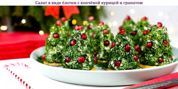 Название: Салат в виде ёлочек с копчёной курицей и гранатом