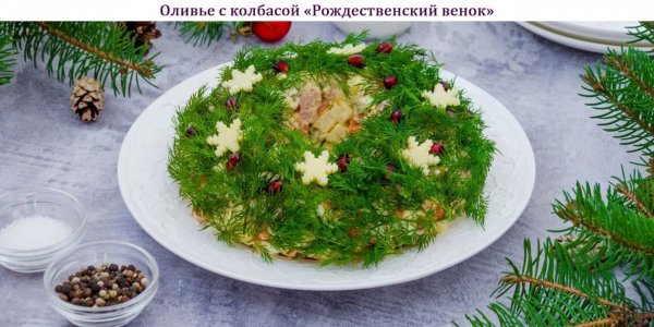 Название: Оливье с колбасой "Рождественский венок"