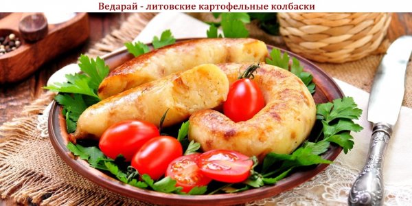 Описание: 🥣 Ведарай - литовские картофельные колбаски✅ Нужно (на 4 порции)⇨ Натуральная оболочка (черева) – 2½ м⇨ Копчёный бекон – 150 г⇨ Лук репчатый – 1-2 шт.⇨ Картошка – 1 кг⇨ Молоко – 250 мл⇨ Соль – по вкусу⇨ Перец чёрный молотый – по вкусу✅ Готовка➦ Оболочку промойте и замочите в воде на 30-40 минут или больше.❗ Следуйте инструкции на упаковке.➦ Бекон нарежьте небольшими кусочками. Обжарьте в сковороде на среднем огне.➦ Когда выделится жир, добавьте измельчённый лук и подрумяньте за 5–6 минут.➦ Картошку натрите на мелкой тёрке и слегка отожмите. Залейте горячим молоком и перемешайте.➦ Добавьте лук с беконом, посолите, поперчите и перемешайте ещё раз.❗ Немного жира из сковороды оставьте для смазывания.➦ С помощью специальной насадки на мясорубку наполните оболочку картофельным фаршем. Примерно каждые 20 см перекручивайте череву, чтобы получились отдельные колбаски одинакового размера.❗ Не уплотняйте фарш слишком сильно.➦ Форму или противень смажьте оставшимся жиром из сковороды. Выложите туда колбаски.➦ Запекайте примерно 50-60 минут при температуре 200 °С. Через 5-8 минут после начала приготовления на каждой колбаске сделайте проколы зубочисткой.