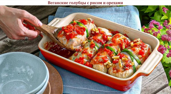 Описание: 🥣 Веганские голубцы с рисом и орехами✅ Нужно⇨ Рис белый варёный – 500 г⇨ Бульон овощной – 80 г⇨ Лук-шалот – 2 шт.⇨ Сельдерей – 80 г⇨ Грецкий орех – 50 г⇨ Базилик – 3 веточки⇨ Мята свежая – 3 веточки⇨ Томаты рубленные в собственном соку – 500 г⇨ Сахар тростниковый – 2 ст.л.⇨ Лук зелёный – 96 г⇨ Паприка сладкая молотая – 1/2 ч.л.⇨ Масло оливковое – по вкусу⇨ Соль, перец чёрный молотый – по вкусу✅ Готовка◆ – Бланшируйте листы капусты в большом количестве подсоленной воды в течение 2 мин., откиньте на дуршлаг, обсушите бумажными полотенцами. Бланшируйте зелёный лук 20 секунд. ◆ – Нарежьте шалот и сельдерей маленькими кубиками, крупно порубите орехи. Измельчите мяту и базилик.◆ – Разогрейте в большой сковороде 1-2 ст. л. оливкового масла, обжаривайте шалот и сельдерей на среднем огне, помешивая, в течение 5 минут. ◆ – Влейте в сковороду бульон, добавьте орехи, готовьте 1 минуту. Положите рис, мяту и базилик, посолите, приправьте паприкой и чёрным перцем, хорошо перемешайте и снимите с огня.◆ – Отдельно смешайте рубленые томаты с сахаром, посолите и поперчите, выложите 2/3 соуса в жаропрочную форму.◆ – Разогрейте духовку до 165 °С. На каждый капустный лист положите рисовую начинку, сверните конвертом, перевяжите бланшированным зелёным луком. Выложите голубцы в томатный соус.◆ – Полейте голубцы оставшимся соусом, накройте форму крышкой или фольгой и запекайте 20-25 минут.❗ НА ЗАМЕТКУ. Для вегетарианских голубцов вместо обычной белокочанной можно использовать пекинскую капусту. А рис заменить на другую крупу. Например, перловку или с гречку, добавив к ним грибы вместо орехов.❗ КСТАТИ. Веганские голубцы с рисом и орехами можно запечь на гриле. Блюдо приобретёт лёгкий аромат дымка и получится очень вкусным. Томатный соус к блюду нужно будет подать отдельно.