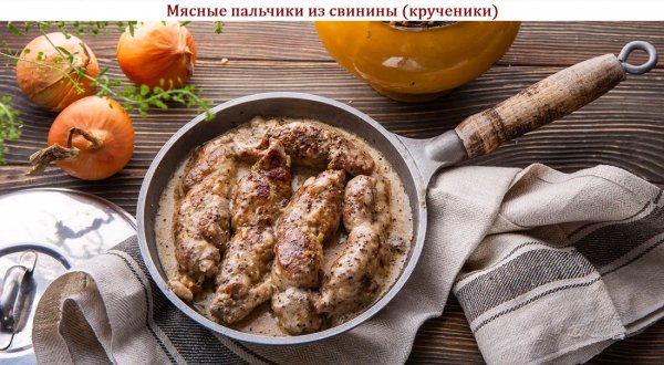 Описание: 🥣 Мясные пальчики из свинины (крученики)✅ Нужно⇨ Свинина – 1 кг⇨ Белые грибы замороженные – 350 г⇨ Лук репчатый – 1 шт.⇨ Сметана 25% (классическая) – 1 ст.л.⇨ Масло подсолнечное – по вкусу⇨ Чесночный порошок – по вкусу⇨ Перец чёрный молотый – по вкусу⇨ Мускатный орех – по вкусу⇨ Соль – по вкусу🔶 Для соуса:⇨ Сметана 30% – 100 г⇨ Мука пшеничная – 1 ст.л.⇨ Соль – по вкусу✅ Готовка◆ – Первое, что нужно сделать когда вы готовите мясные пальчики — разморозить грибы. С вечера достаньте их из морозильной камеры и переложите в дуршлаг. За ночь на верхней полке холодильника они полностью оттают. Рецепт пальчиков предполагает использование замороженных грибов, которые предварительно были отварены. Вам нужно только ополоснуть их водой.◆ – Влейте в сковороду немного растительного масла. Положите нарезанный кубиками репчатый лук, слегка обжарьте, затем добавьте грибы. Готовьте на среднем огне, редко помешивая, до появления румяной корочки. Посолите, поперчите, посыпьте натёртым мускатным орехом. Добавьте сметану жирностью 25%, перемешайте, прогрейте в течение 1-2 минут.◆ – Самые вкусные пальчики из свинины получаются с корейкой и шеей. Нарежьте мясо на кусочки толщиной не менее 1,5 см. Если с боков есть жирок, его можно по желанию удалить или оставить. Положите мясо на разделочную доску и тщательно отбейте с обеих сторон, предварительно накрыв плёнкой. Совсем немного посолите, посыпьте чесноком и перцем.◆ – Разложите ломтики мяса на рабочей поверхности. Обратите внимание, что посыпанная специями сторона должна быть снизу. На каждый кусочек положите по 1–2 ст. л. грибной начинки и сверните плотный рулет так, как если бы вы готовили фаршированные блинчики. Если мясные пальчики из свинины разваливаются, их можно скрепить зубочистками.◆ – Нагрейте на сильном огне большую сковороду. Слоем в 1 мм влейте растительное масло, хорошо разогрейте его. Положите пальчики из свинины, уменьшите нагрев и обжарьте мясо со всех 4 сторон до корочки. Переложите на бумажные полотенца.◆ – В эту же сковороду всыпьте муку и очень тщательно перемешайте. Прогрейте до появления лёгкого орехового аромата, затем добавьте густую, в идеале, фермерскую сметану жирностью не менее 30%, снова перемешайте. Влейте 150 мл горячей воды, слегка посолите.◆ – Готовьте соус до загустения, около 2 минут. Затем верните в сковороду обжаренные рулетики и тушите на слабом огне 30-35 минут. Подавать мясные пальчики из свинины с начинкой, рецепт которых можно усложнить гарниром, лучше всего горячими.❗ НА ЗАМЕТКУ. В пальчики из свинины с начинкой не обязательно класть именно белые грибы. Отлично подойдут и обычные шампиньоны, опята и т. д.❗ КСТАТИ. Если хотите разнообразить рацион, то мясные пальчики можно тушить с разными соусами. Сметанный можно заменить на томатно-чесночный или перечный, приготовленный из печёных сладкого и острого перцев.