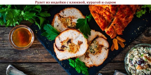 Название: Рулет из индейки с клюквой, курагой и сыром