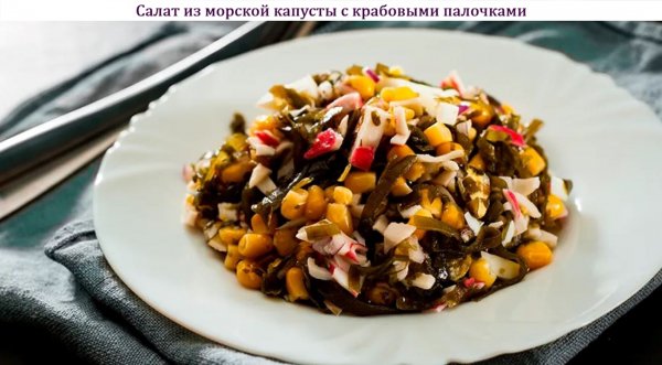 Описание: 🥣 Салат из морской капусты с крабовыми палочками✅ Нужно⇨ крабовые палочки – 80 г⇨ консервированная морская капуста – 100 г⇨ яйцо отварное – 1 шт.⇨ лук репчатый – 1/2 шт.⇨ кукуруза сладкая консервированная – 3 ст. л.⇨ рафинированное растительное масло✅ Готовка◆ – Репчатый лук тонко нашинкуйте, переложите в миску, обдайте кипятком, оставьте на 30 секунд, после чего откиньте на дуршлаг и промойте проточной водой.◆ – Крабовые палочки и отварное яйцо мелко нарежьте. Слейте из банки с морской капустой всю жидкость.◆ – Соедините крабовые палочки, лук, морскую капусту, яйца и кукурузу. Перемешайте до однородности, попробуйте, при необходимости досолите, только очень аккуратно — и капуста, и палочки уже солёные.◆ – Заправьте готовый салат рафинированным растительным маслом, разложите по тарелкам, подавайте на стол.