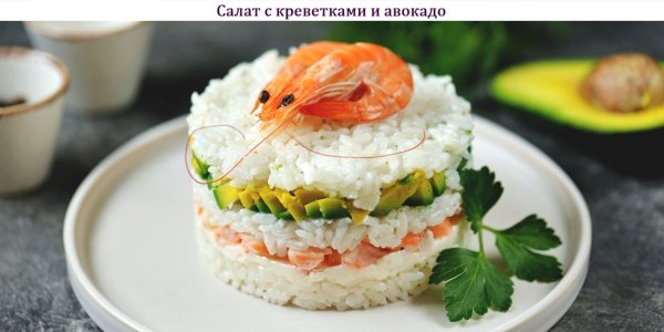 Описание: 🥣 Салат с креветками и авокадо✅ Нужно⇨ Рис – 190 г⇨ Соль – 1 ч. ложка⇨ Вода – 500 мл⇨ Рисовый уксус – 3 ст. ложки⇨ Сахар – 1 ст. ложка⇨ Креветки – 300-350 г + для декора⇨ Авокадо – 1 штука⇨ Свежевыжатый лимонный сок – 1-2 ч. ложки⇨ Крем-сыр – по вкусу⇨ Зелень – по вкусу✅ Готовка◆ – Несколько раз промойте рис под проточной водой. Сложите в кастрюлю, добавьте половину чайной ложки соли и залейте тёплой водой.◆ – Доведите до кипения, закройте крышкой и варите на среднем огне примерно 10 минут.◆ – Снимите рис с огня и оставьте под крышкой ещё на 12 минут.◆ – Соедините уксус с солью и сахаром. Несколько минут подогревайте, постоянно помешивая, чтобы все кристаллики растворились. Соедините с тёплым рисом, остудите.◆ – Креветки отварите за несколько минут. Очистите и измельчите. Несколько штук можно оставить целыми для декора.◆ – Авокадо нарежьте небольшими кусочками и сбрызните лимонным соком.◆ – В миску или на тарелку через кулинарное кольцо выложите слои в такой последовательности: треть риса, крем-сыр, креветки, треть риса, авокадо и остатки риса. Слои риса слегка приминайте. При желании украсьте креветками и зеленью.