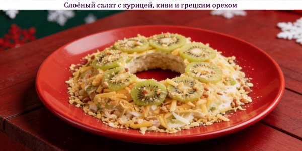 Название: Слоёный салат с курицей, киви и грецким орехом