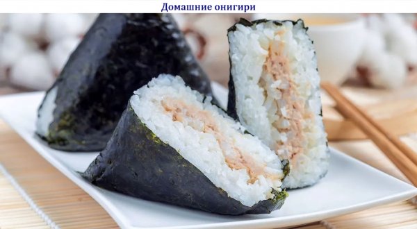 Описание: 🥣 Домашние онигири✅ Нужно (на 8 порций)⇨ Рис круглозёрный шлифованный – 250 г⇨ Консервированный тунец – 100 г⇨ Нори лист – 1 шт.⇨ Майонез японский – 3 ст.л.⇨ Соус шрирача – по вкусу⇨ приправа комбу – по вкусу⇨ приправа фурикаке (для риса) – по вкусу⇨ Кунжут – чёрный⇨ Соль – по вкусу✅ Готовка◆ – Промойте рис. Для этого залейте его прохладной водой, сполосните и слейте воду. Повторите несколько раз, пока вода не станет прозрачной. Положите рис в кастрюлю и залейте водой из расчёта 250 г риса к 275 мл воды. Поставьте на сильный огонь. Когда вода закипит убавьте огонь до минимального и варите 13-15 минут, не открывая крышку.◆ – Выключите огонь. Возьмите большое полотенце и укутайте кастрюлю. Рис должен постоять в тепле еще примерно полчаса. Потом снимите полотенце и дайте рису остыть при комнатной температуре.◆ – Тунец откиньте на сито, чтобы стекла лишняя жидкость — можно использовать рыбу в масле или собственном соку. Последний вариант предпочтительней, чтобы начинка не была слишком жирной.◆ – Добавьте к тунцу майонез, соус шрирача и тщательно разомните всё при помощи вилки. При желании добавьте немного комбу. Если у вас она в листах, то её необходимо измельчить ножом или ножницами. Разделите начинку на 8 равных частей.◆ – Рис также разделите на 8 равных частей и соберите в шарики. На пищевой плёнке раскатайте шарик в блин толщиной примерно 1 см. В центр блина добавьте начинку. Поднимайте плёнку с трёх сторон и формируйте закрытый треугольник. Если вам удобно можно слепить треугольник сразу руками. Для этого смочите руки водой, чтобы рис к ним не прилипал.◆ – 4 онигири сделайте открытыми. Для них вырежьте из листа нори 4 полоски примерно 5х8 см. Поставьте онигири широким основанием в центр полоски водорослей, поперёк. Свободные концы полоски поднимите и прижмите к рису. Прикладывать нори к рису необходимо шершавой стороной. Посыпьте онигири кунжутом и можно подавать.◆ – Остальные онигири сделайте закрытыми. Здесь, чтобы обернуть один онигири, понадобится половина стандартного листа водорослей нори. Влажными руками сформируйте онигири и положите на получившуюся полоску, острой стороной к середине короткого края. Углы полоски заведите на рис.◆ – Переверните треугольник так, чтобы открытая сторона риса оказалась на нори. Свободные уголки полоски закрепите на онигири, смочив водой. Или с помощью пары зёрен вареного риса. Если хотите оставить кончик открытым, то остаток полоски можно обрезать ножницами.❗ НА ЗАМЕТКУ. Онигири не готовят впрок и не хранят в холодильнике. Это блюдо при подаче на стол должно быть комнатной температуры. Когда делаете онигири, основную часть готового риса нужно держать под крышкой, чтобы он не заветрился. Онигири едят руками.