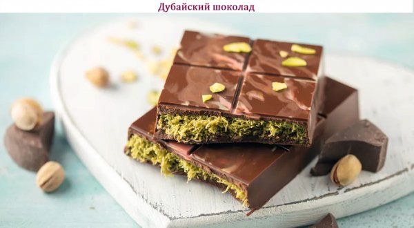 Описание: 🥣 Дубайский шоколад✅ Нужно⇨ Шоколад тёмный (60% какао) – 180 г⇨ Шоколад молочный – 180 г⇨ Шоколад белый – 180 г⇨ Тесто кадаиф (кадаифи, катаифи) – 150 г⇨ Масло сливочное – 40 г⇨ Паста фисташковая – 70 г⇨ Фисташки – 15 г⇨ Соль – на кончике ножа✅ Готовка◆ – Нарежьте тесто катаифи кусочками длиной 1 см. В сковороде растопите сливочное масло и обжарьте тесто на среднем огне, помешивая, до золотистой корочки. Выложите на бумажные полотенца.◆ – Мелко порубите фисташки, смешайте с фисташковой пастой, щепоткой соли и обжаренным тестом.◆ – Каждый вид шоколада нарежьте небольшими кусочками и выложите в отдельные жаропрочные миски. Растопите в микроволновой печи один вид шоколада импульсами по 10 секунд или на водяной бане, постоянно помешивая. ◆ – Вылейте половину шоколада в силиконовую форму с прямоугольными ячейками. Распределите по дну и стенкам, а затем переверните, чтобы стекли излишки. Уберите форму в холодильник на 30 минут до застывания шоколада.◆ – Вновь растопите оставшийся шоколад. Достаньте форму, аккуратно наполните ячейки приготовленной фисташковой начинкой, не доходя до краёв. Залейте начинку шоколадом и уберите форму на 30 минут в морозильную камеру. Важно, чтобы шоколадная плитка полностью застыла.◆ – Аналогично приготовьте шоколадные плитки из других видов шоколада. Аккуратно достаньте из форм. Храните до подачи в холодильнике, завернув в пергамент или пищевую плёнку.❗ НА ЗАМЕТКУ. Если вы просматриваете соцсети, то наверняка видели в роликах дубайский шоколад. Это лакомство легко узнать по ярко-зелёной начинке, состоящей из фисташковой пасты и жареного теста катаифи. Десерт очень вкусен, но купить его непросто даже в Дубае, а найти оригинальный продукт у нас и вовсе сложно. Но не отчаивайтесь, приготовить шоколад с фисташками можно и на домашней кухне, было бы желание. Тесто кадаиф (тончайшее тесто в виде длинных нитей, которое напоминает вермишель) продается на маркетплейсах, там же можно купить формочки для шоколадных плиток, фисташковую пасту и качественный шоколад в каллетах (это небольшие кусочки шоколада в форме капель, которые используются в кондитерском деле).❗ КСТАТИ. Маркетплейс — это торговая площадка, которая помогает продавцам и покупателям найти друг друга в интернете. На маркетплейсе собраны миллионы товаров самых разных категорий — от продуктов питания до одежды и бытовой техники.
