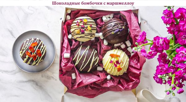 Описание: 🥣 Шоколадные бомбочки с маршмеллоу✅ Нужно (на 6 порций)⇨ Шоколад тёмный (70-85% какао) – 100 г⇨ Шоколад молочный – 100 г⇨ Шоколад белый – 100 г⇨ Маршмеллоу – 90 г⇨ Какао-порошок – 4 ч.л.⇨ Сахар-песок – 4 ч.л.⇨ Сахар ванильный – 2 ч.л.🔶 Для украшения:⇨ Лаванда сушёная – по вкусу⇨ Сухофрукты – по вкусу✅ Готовка◆ – Растопите в микроволновой печи или на водяной бане белый шоколад. Чайной ложкой выложите шоколад в 4 ячейки силиконовой или пластиковой формы в виде полусфер диаметром 6-7 см. Распределите шоколад по поверхности формы и уберите её на 10 минут в морозильную камеру. Аккуратно выньте застывшие половинки бомбочек.◆ – Таким же образам приготовьте по 4 полусферы из молочного и тёмного шоколада.◆ – Соедините какао с обычным и ванильным сахаром. В 6 шоколадных половинок выложите по 1 ч. л. смеси из какао и добавьте маршмеллоу.◆ – Нагрейте столовый нож и проведите по краям одной наполненной полусферы. Сразу же соедините с пустой половинкой – они должны склеиться, получится шар. Вы можете сделать бомбочки одного цвета или соединять половинки из белого и молочного шоколада. Снова уберите в морозильную камеру на 10-15 минут.◆ – Растопите остатки шоколада. Переложите в кондитерский мешок и срежьте маленький уголок. Выньте бомбочки и полейте тонкими полосками шоколада. Пока шоколад не застыл, украсьте бомбочки декоративными сушёными цветами и сушёными фруктами.❗ НА ЗАМЕТКУ. Шоколадные бомбочки с маршмеллоу станут отличным подарком и детям, и взрослым. Красиво украшенные бомбочки можно разложить по прозрачным пакетикам и перевязать яркой лентой, или подобрать подходящие по размеру коробочки.❗ КСТАТИ. Растапливать шоколад в микроволновой печи лучше в импульсном режиме по 10-15 секунд, перемешивая между циклами нагрева, чтобы шоколад быстрее растаял и не перегрелся. Чтобы приготовить напиток с шоколадными бомбочками, подогрейте молоко, налейте в кружку и опустите бомбочку. Подождите 30 секунд и размешайте. Пейте тёплым.