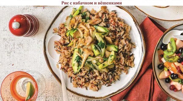 Описание: 🥣 Рис с кабачком и вёшенками✅ Нужно (на 2 порции)⇨ 250 г смеси белого и дикого риса⇨ 200 г вёшенок⇨ 1 кабачок⇨ 1 луковица⇨ 2 зубчика чеснока⇨ 2 веточки петрушки⇨ 2 ст. л. растительного масла⇨ 2 ст. л. нерафинированного подсолнечного масла⇨ соль, молотый чёрный перец✅ Готовка◆ – Всыпьте рис в сотейник, влейте 350 мл горячей воды, посолите и доведите на сильном огне до кипения. Уменьшите нагрев до минимального, накройте сотейник крышкой и варите рис в течение 15 минут. Несколько раз перемешайте вилкой. Оставьте рис под крышкой в тепле на 10 минут.◆ – Нарежьте вёшенки ломтиками, кабачок – соломкой, лук – перьями. Разогрейте в сковороде растительное масло и обжарьте лук, 3 минут. Добавьте грибы и кабачок, посолите, приправьте перцем и готовьте 7 минут.◆ – Соедините рис с овощами, добавьте измельчённый чеснок и половину мелко нарезанной петрушки. Аккуратно перемешайте, полейте нерафинированным растительным маслом и прогрейте 1 минуту. Разложите рис с овощами в тарелки и украсьте оставшейся петрушкой.❗ КСТАТИ. Рис с кабачком и вёшенками – вегетарианское блюдо-конструктор, которое подойдёт как на роль гарнира, так и на роль самостоятельного горячего для вашего обеда и ужина. Такие блюда хороши многообразием вариантов исполнения: смесь белого и дикого риса можно заменить каким-то одним из них, а ещё булгуром или гречкой. Вместо кабачка и вёшенок возьмите, например, сладкий перец и шампиньоны, добавьте замороженный зелёный горошек или кукурузу. Нерафинированное масло добавит смеси необычного вкуса и аромата, и оно тоже может быть любым, не только подсолнечным, но и кунжутным, тыквенным и даже кокосовым. Вариации на тему сочетания риса и овощей можно найти в большинстве современных кухонь мира – выбирайте, куда хотите отправиться сегодня и используйте соответствующие ингредиенты!