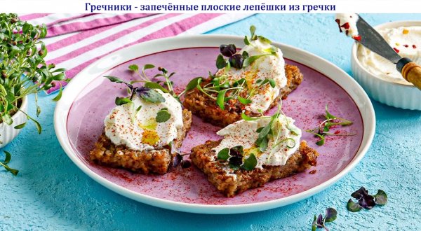 Описание: 🥣 Гречники - запечённые плоские лепёшки из гречки✅ Нужно (на 4 порции)-⇨ Гречневая крупа (ядрица) – 1 стакан⇨ Мука пшеничная – 4 ст.л.⇨ Соль – 1 ч.л.⇨ Масло топлёное – по вкусу⇨ Сметана 10% (нежирная) – по вкусу⇨ Зелень – по вкусу✅ Готовка◆ – Крупу при необходимости переберите, тщательно промойте, чтобы стекающая с неё вода была прозрачной. Откиньте на сито, положите в кастрюлю и залейте 700 мл кипящей фильтрованной или бутилированной воды.◆ – Доведите до кипения, при необходимости снимите пену. Посолите, уменьшите огонь до минимума и варите, плотно закрыв кастрюлю крышкой, 1 час.◆ – Получившуюся горячую кашу-размазню снимите с огня, добавьте в кашу муку и очень тщательно размешайте. Не должно остаться ни одного комочка муки!◆ – Горячую смесь выложите на застеленный смазанной маслом бумагой для запекания противень или в форму для запекания, слоем толщиной примерно 1,5 см.◆ – Разровняйте кашу лопаткой или влажной ладонью. Поставьте противень в нежаркую (120-130 °С) духовку для подсушивания на 10 минут, затем выньте и остудите. Это можно сделать накануне вечером.◆ – Готовые гречники нарежьте ножом небольшими прямоугольничками и прямо перед подачей обжарьте в масле со всех сторон до золотистого цвета. Подавайте горячими или остывшими – с сыром, творогом или сметаной.❗ НА ЗАМЕТКУ. Попробуйте добавить в гречники грибы, подойдут любые на ваш вкус. Такое сочетание - классика кулинарного жанра, поэтому лишними грибочки здесь не будут точно, а вкуса и питательности блюду придадут сполна.❗ КСТАТИ. Интересный вопрос: почему гречники когда-то были «грешными»? Дело в том, что отдельные торговцы обжаривали гречку на растопленном свином сале (растительное масло когда-то было редким продуктом и весьма дорогим, особенно в сравнении с дешёвым смальцем). А ещё в гречники добавляли для сытности яйцо, что категорически запрещалось делать в Пост. Впрочем, в обычное время вы можете приготовить и такой вариант.