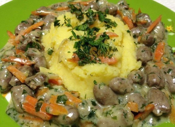 Тушёные куриные сердечки