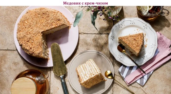 Описание: 🥣 Медовик с крем-чизом✅ Нужно🔶 Для теста:✦ Мука пшеничная – 500 г✦ Сахар-песок – 200 г✦ Мёд – 100 г✦ Масло сливочное – 70 г✦ Яйцо куриное – 2 шт.✦ Сода пищевая – 1 ч.л.✦ Соль – на кончике ножа🔶 Для крема:✦ Сыр творожный – 500 г✦ Сливки 30% – 500 г✦ Сахарная пудра – 130 г✦ Сахар ванильный – 20 г✅ Готовка◆ – Приготовьте тесто. В кастрюльку, желательно — с толстыми стенками и дном — положите сливочное масло, сахар, яйца и натуральный ароматный мёд. Поставьте на средний огонь и доведите, помешивая, до растворения сахара, а масло должно стать жидким. Не кипятите!◆ – Добавьте соду, перемешайте. Масса посветлеет, вспенится и поднимется. Желательно к этому моменту уже иметь под рукой нужное по рецепту количество просеянной муки.◆ – Снимите с огня и всыпьте муку, быстро перемешайте. Выложите тесто на присыпанный мукой стол. Вымесите руками. Тесто получится мягкое, почти липкое. Но такое и должно быть. Если вы забьёте его мукой на данном этапе, оно может получиться жёстким и коржи в результате получатся твёрдые.◆ – Заверните тесто в плёнку или положите в пакет для пищевых продуктов и дайте полежать — можно даже на столе, не в холодильнике. Оно «созреет» и с ним будет удобнее работать.◆ – Разделите тесто на 10-12 кусочков, сформируйте шарики. Накройте плёнкой. Включите духовку разогреваться до 180 °C. И займитесь раскаткой и выпеканием медовых коржей.◆ – Раскатывайте тесто очень тонко — до 3 мм. Можно прямо на пергаменте или коврике. Накалывайте вилкой в разных местах. Выпекайте до румяного цвета и течение примерно 4-5 минут. Готовые коржи вынимайте и сразу обрезайте по кольцу или тарелке. Обрезки сохраняйте.◆ – Для крем-чиза соедините в миске холодный сыр и холодные же сливки, добавьте сахарную пудру и ванильный сахар. Взбейте всё до объединения и пышного состояния.◆ – Соберите торт, прослоив кремом все коржи. Обрезки измельчите в блендере в мелкую крошку и покройте бока и верх торта. Дайте настояться в холодильнике в течение минимум 6 часов и можно подавать.❗ КСТАТИ. Торт будет ещё красивее и аккуратнее, если вы соберёте его в кольце или разъёмной форме, дадите отстояться ночь и лишь затем покроете кремом и медовой крошкой.❗ НА ЗАМЕТКУ. Не кладите свежеиспечённые коржи друг на друга: они липковаты и могут крепко соединиться. Проложите их пергаментом или складывайте стопкой, когда они немного подсохнут.