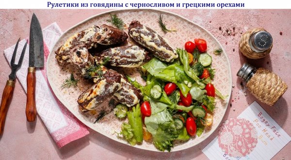 Описание: 🥣 Рулетики из говядины с черносливом и грецкими орехами✅ Нужно✦ Говяжья вырезка филейная – 1 кг✦ Лук репчатый – 160 г✦ Чернослив – 150 г✦ Грецкий орех – 80 г✦ Сыр Фета – 100 г✦ Масло сливочное – 20 г✦ Майонез – 150 г✦ Горчица дижонская – 1 ст.л.✦ Чеснок – 4 зубчика✦ Масло растительное рафинированное – 2 ч.л.✦ Перец чёрный молотый– по вкусу✦ Соль – по вкусу✅ Готовка◆ – Тщательно промойте чернослив и залейте его горячей водой в миске минут на 30, чтобы немного размяк. Время зависит от жёсткости чернослива, но не надо доводить его до совсем мягкого состояния — он должен оставаться в меру упругим.◆ – Нарежьте говяжью вырезку на ровные поперечные ломтики толщиной не более 1 см. Отбейте каждый ломтик с обеих сторон до толщины не более 5 мм. Приправьте солью и молотым чёрным перцем. Отставьте.◆ – Репчатый лук очистите и нарежьте тонкими четвертинками колец. Растопите в сковороде сливочное масло и обжарьте лук на среднем огне в течение 5 минут до золотистого оттенка.◆ – Грецкие орехи порубите ножом или раздробите толкушкой до частиц размером 4-5 мм. Размоченный чернослив обсушите салфетками и нарежьте довольно крупными кусочками.◆ – Добавьте к пассерованному луку грецкие орехи, обжарьте в течение минуты, затем выложите в сковороду чернослив, перемешивайте ещё минуту, снимите с огня, выложите содержимое сковороды в миску.◆ – Дайте смеси немного остыть и добавьте в неё сыр фета. Всё хорошо перемешайте и приправьте молотым чёрным перцем по вкусу. В отдельной чашке смешайте майонез с дижонской горчицей.◆ – Возьмите ломтик говядины, смажьте его тонким слоем майонезно-горчичного соуса. Возьмите небольшое количество начинки из чернослива с орехами и распределите её на половине поверхности мяса. Сверните рулетик.◆ – Скрутите таким образом рулетики из всех ломтиков говядины, укладывая их швом вниз в форму для запекания подходящего размера, смазанную растительным маслом. Туда же бросьте зубчики чеснока в кожице, раздавленные плоской стороной ножа.◆ – Заблаговременно разогрейте духовку до 200 °С. Поставьте в неё форму с говяжьими рулетиками и запекайте их в течение 15-20 минут. Затем выньте, смажьте оставшимся майонезом с горчицей и запекайте рулетики из говядины с черносливом и грецкими орехами в духовке ещё минут 15 до лёгкого румянца. Выньте, дайте рулетикам отдохнуть минут 5-7 и подавайте с гарниром по вашему вкусу или салатом из овощей.