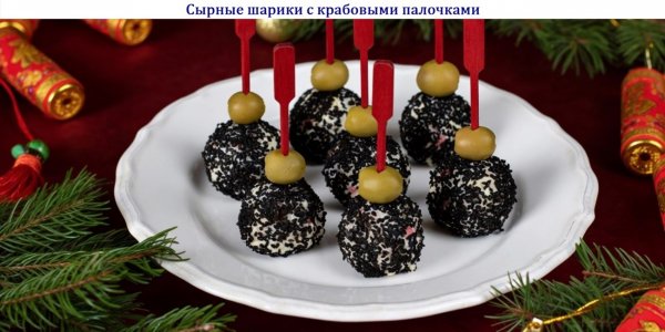 Описание: 🥣 Сырные шарики с крабовыми палочками✅ Нужно (на 7 порций)✦ Яйца – 2 штуки✦ Твёрдый сыр – 50 г✦ Крабовые палочки – 5 штук✦ Чеснок – 1 зубчик✦ Творожный сыр – 150 г✦ Кунжут – по вкусу✦ Оливки без косточек – по количеству шариков✅ Готовка◆ – Яйца сварите вкрутую за 10 минут, остудите и очистите.◆ – Мелко натрите яйца, сыр и крабовые палочки. Измельчите чеснок.◆ – Смешайте их с творожным сыром. Если масса суховата, добавьте ещё творожного сыра.◆ – Скатайте из массы небольшие шарики и обваляйте в кунжуте.◆ – Наколите на шпажки оливки и вставьте в сырные шарики. Перед подачей закуску лучше охладить.