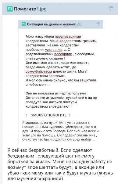 Описание: Я совсем один . Меня с ума сводили колдовством. И много зла хотели и хотят сделать !!! Из за дурной славы на работу не возьмут , если за коммуналку не заплачу , бездомным стану , а следующий шаг петля ... Живу я ради того , что бы писать доброе людям и объяснять , что бы люди не грешили !