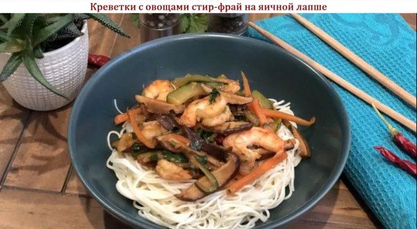 Название: Креветки с овощами стир-фрай на яичной лапше