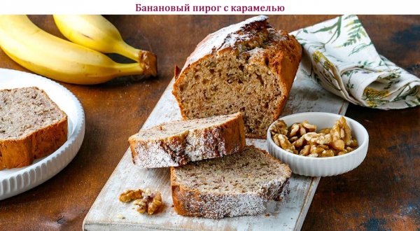 Описание: 🥣 Банановый пирог с карамелью✅ Нужно (на 6 порций)➦ Мука пшеничная – 280 г➦ Сахар-песок – 160 г➦ Масло сливочное – 100 г➦ Яйцо куриное – 2 шт.➦ Банан – 3 шт.➦ Грецкий орех – 50 г➦ Сода пищевая – 1 ч.л.➦ Соль – на кончике ножа➦ Сахарная пудра – по вкусу✅ Готовка✔ — Наломайте бананы небольшими кусочками и тщательно разомните вилкой. Растопите и остудите сливочное масло. Просейте муку с содой через мелкое сито. Если вы будете добавлять орехи, крупно порубите их ножом.✔ — Разогрейте духовку до 180 °С. Прямоугольную форму для кекса застелите бумагой для выпечки.✔ — В большой миске соедините яйца и сахар и взбейте миксером в пышную пену, 5 минут. Добавьте щепотку соли, растопленное сливочное масло и банановое пюре и перемешайте. Всыпьте мучную смесь и орехи (по желанию) и перемешайте до однородности.✔ — Перелейте тесто в форму и выпекайте на среднем уровне духовки в течение 1 часа. На поверхности пирога должен образоваться разлом. Проверьте готовность деревянной шпажкой. При необходимости выпекайте пирог ещё 5-7 минут. Остудите пирог на решётке и посыпьте сахарной пудрой.🔥 НА ЗАМЕТКУ. Сладкий ароматный банановый пирог (он же банановый хлеб) — невероятно популярная выпечка как среди детей, так и среди взрослых. По сути, это кекс, тесто для которого готовится с добавлением пюре из свежих спелых бананов. Чем более спелые бананы вы возьмёте (подойдут даже потемневшие экземпляры), тем более нежным, насыщенным и ароматным получится ваш кекс. Такой пирог отлично сочетается с орехами, не только грецкими, но и например, пеканом или фундуком, в тесто можно добавить также цукаты или сухофрукты, а сверху украсить пирог простой лимонной помадкой.🔥 КСТАТИ. Бананы можно измельчить погружным блендером вместе с растопленным сливочным маслом для более гладкой и однородной текстуры теста.Чтобы разлом на поверхности пирога получился аккуратнее, сделайте на тесте «пробор» по центру лопаткой перед отправкой пирога в духовку.