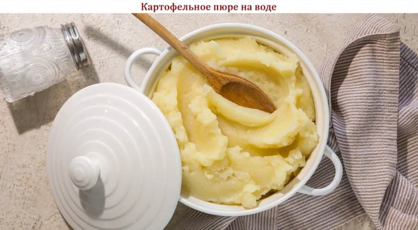 Описание: 🥣 Картофельное пюре на воде✅ Нужно (на 2 порции)➦ Картофель – 500 г➦ соль – по вкусу✅ Готовка✔ — Подготовьте картофель. Очистите его и каждый клубень разрежьте на 2 или 4 части (так он быстрее сварится). Сложите в кастрюлю подходящего размера и залейте кипящей водой.✔ — Доведите до кипения и варите на среднем огне 20-25 минут. По истечении указанного времени попробуйте разломить вилкой картофель. Если это получилось легко, снимайте кастрюлю с огня.✔ — Слейте воду в ковшик или стакан. Картофель разомните толкушкой. Посолите. Затем, перемешивая, постепенно добавляйте картофельный отвар. В результате должно получиться нежное густое пюре однородной консистенции.🔥 НА ЗАМЕТКУ. Картофельное пюре на воде станет настоящей находкой для постящихся, веганов и вегетарианцев. Дополните блюдо свежими овощами или салатом из них, и получится вполне сытный, к такому же полезному обеду или ужину. Сторонники классического рецепта, скорее всего, показывают, что такое картофельное пюре и не картофельное пюре вовсе, напомнит о большом количестве масла, которое просто необходимо для насыщенного вкуса. И все-таки постный вариант блюда имеет право на существование! К тому же калорийность такого пюре значительно ниже, чем у традиционного, а это, согласитесь, для многих имеет значение.🔥 КСТАТИ. Любители нестандартных решений могут добавить в такое веганское картофельное пюре немного горячего растительного молока, например, овсяного, рисового или даже кокосового.Чтобы картофельное пюре на воде получилось особенно вкусным, в него можно добавить немного растительного масла, а также измельчённую зелень (укроп, петрушка) и рубленый зубчик чеснока.