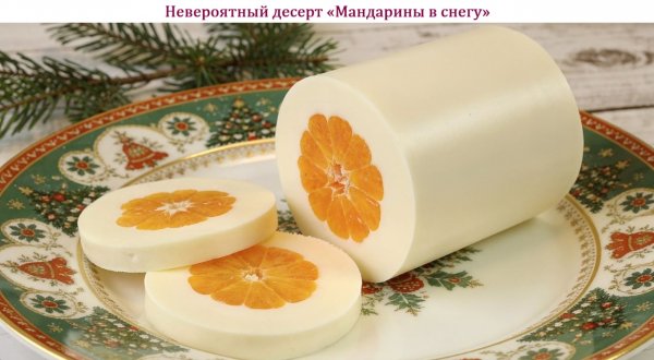Описание: 🥣 Невероятный десерт «Мандарины в снегу»✅ Нужно (на 8 порций)➦ Быстрорастворимый желатин – 30 г➦ Холодная вода – 200 мл➦ Сметана – 800 г➦ Обычный сахар – 190 г➦ Ванильный сахар – 10 г➦ Мандарины – 5-6 штук✅ Готовка✔ — Перемешайте желатин с водой и оставьте набухать.✔ — В другой ёмкости смешайте сметану и весь сахар. Песок должен раствориться.✔ — Возьмите ровную пластиковую бутылку объёмом 1,5 л. Срежьте верхушку.✔ — Растопите желатин в микроволновке и медленно введите к сметане, помешивая её. В массе не должно быть комочков.✔ — Влейте немного сметанной массы в бутылку, уберите в холодильник на 15 минут.✔ — Очистите мандарины и наденьте на длинную деревянную палочку.✔ — Поставьте в бутылку конструкцию с мандаринами. Закрепите её сверху, прикрепив горизонтальную палочку.✔ — Слегка прогрейте сметану, чтобы она стала пожиже. Залейте бутылку до самого верха.✔ — Аккуратно переставьте в холодильник на 6-8 часов, до застывания.✔ — Надрежьте бутылку и осторожно снимите её. Выньте палочку. Неровный низ десерта срежьте.