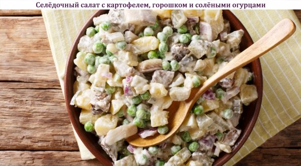 Название: Селёдочный салат с картофелем, горошком и солёными огурцами