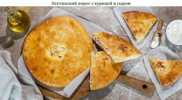 Описание: 🥣 Осетинский пирог с курицей и сыром✅ Нужно (на 3 порции)🔶 Для теста:➦ Мука пшеничная – 500 г➦ Молоко – 400 мл➦ Масло сливочное – 40 г➦ Дрожжи прессованные – 10 г➦ Сахар-песок – 8 г➦ Соль – по вкусу🔶 Для начинки:➦ Филе куриных бёдрышек – 300 г➦ Сыр рассольный – 200 г➦ Сметана 18% – 50 г➦ Соль – по вкусу➦ Перец чёрный молотый – по вкусу🔶 Для смазки:➦ Масло сливочное – 70 г✅ Готовка✔ — Хотите научиться готовить дома осетинские пироги? Для теста вам понадобятся прессованные дрожжи, молоко, мука, соль и сахар. Для начинки подготовьте филе куриного бедра: оно сочнее, чем филе грудки, осетинский сыр, сметану, соль и чёрный молотый перец.✔ — Замесите дрожжевое тесто для пирога. Разведите дрожжи в ёмкости с тёплым молоком, добавьте сахар, перемешайте. Понемногу добавляйте муку и замешивайте тесто сначала ложкой, а потом руками. Добавьте соль и растопленное сливочное масло, перемешайте. ✔ — Соберите тесто в комок, Накройте ёмкость плёнкой и оставьте в тёплом месте на 1 час для подъёма. Подошедшее тесто обомните, накройте плёнкой и оставьте ещё на 1 час.✔ — Пока тесто зреет, приготовьте начинку. Филе куриных бёдер отварите в 2 л подсоленной воды, в течение 50 минут, снимая пену. Дайте остыть в бульоне, так филе будет сочнее. Бульон оставьте для других блюд. ✔ — Остывшее куриное филе мелко нарежьте, переложите в миску. Осетинский сыр натрите на крупной тёрке и соедините с филе. Посолите и поперчите, добавьте сметану, перемешайте.✔ — Разделите тесто на 3 равные части, скатайте в шары, накройте их полотенцем и оставьте на 15 минут. Начинку для осетинского пирога с курицей и сыром также разделите на 3 равные части.✔ — Возьмите один шар теста и руками разомните его в небольшую лепёшку. Положите лепёшку на стол, посыпанный мукой. В центр лепёшки положите 1/3 часть начинки в форме шара. Натяните края лепёшки на начинку, соедините их наверху и защипите. Повторите процесс с оставшимся тестом и начинкой. У вас получится 3 шарика из теста с начинкой — заготовки для пирогов.✔ — Круглую форму для выпечки диаметром 16-18 см смажьте сливочным маслом. Положите в центр формы один шар из теста с начинкой. Руками аккуратно разминайте и растягивайте шар в тонкую лепёшку по размеру формы. В центре пирога сделайте ножом крестообразный надрез для выхода пара.✔ — Поставьте форму с пирогом на средний уровень духовки, заранее разогретой до 200 °С, выпекайте 15-20 минут. Готовый пирог переложите на блюдо и смажьте кусочком сливочного масла.✔ — В освободившуюся форму положите второй шар из теста с начинкой. Повторите процесс растягивания. Выпекайте по той же схеме. Так же приготовьте и испеките третью заготовку пирога.✔ — Складывайте пироги друг на друга стопкой, смазывая их поверхности кусочком сливочного масла. Острым ножом разрежьте всю стопку на 4 части и сразу подавайте на стол.