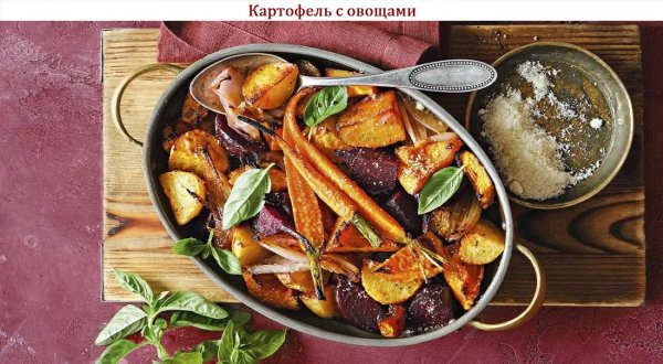 Описание: 🥣 Картофель с овощами✅ Нужно (на 4 порции)➦ картофель – 4-5 средних➦ морковь – 4-5 шт.➦ свёкла – 3-4 средних➦ тыква – 300 г➦ лук-шалот – 4 шт.➦ чеснок – 2-3 зубчика➦ оливковое масло – 70 г➦ тёртый пармезан – 40 г➦ базилик – 1 веточка➦ соль, молотый чёрный перец✅ Готовка✔ — Разогрейте духовку до 200 °С. Свёклу оберните фольгой и запекайте 1 час.✔ — Тыкву очистите от кожуры и нарежьте крупными дольками. Лук-шалот почистите и разрежьте пополам. Картофель и морковь почистите и разрежьте на 2-4 части✔ — Все овощи, кроме свёклы, сложите в большую миску, посолите и поперчите, посыпьте мелкорубленным чесноком. Хорошо перемешайте и выложите на противень. Поставьте в духовку и запекайте 20-25 минут.✔ — Запеченную свёклу очистите и нарежьте на крупные дольки, добавьте на противень к овощам.✔ — Сбрызните овощи оливковым маслом, посыпьте пармезаном и запекайте ещё 12-15 минут. Готовые овощи украсьте базиликом.🔥 НА ЗАМЕТКУ. Такие запечённые овощи можно приготовить в духовке не только на противне, но и в красивой керамической форме, и в ней же подать на стол, украсив блюдо свежей зеленью.🔥 КСТАТИ. Набор овощей вы можете взять на свой вкус: добавьте батат, сладкий перец, корень сельдерея или цветную капусту.