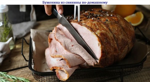 Описание: 🥣 Буженина из свинины по-домашнему✅ Нужно (на 20 порций)➦ Свинина – 2 кг🔶 Для рассола:➦ Вода – 2 л➦ Соль – 2 ст.л.➦ Сахар-песок – 1 ст.л.➦ Перец чёрный горошек – 20 шт.➦ Перец душистый горошек – 10 шт.➦ Кориандр – 2 ч.л.➦ Лавровый лист – 2 шт.➦ Гвоздика – 2 шт.🔶 Для обмазки:➦ Масло растительное рафинированное – 2 ст.л.➦ Паприка сладкая молотая – 2 ч.л.➦ Кориандр молотый – 2 ч.л.➦ Чеснок сушеный – 2 ч.л.➦ Перец чёрный молотый п– о вкусу✅ Готовка✔ — Подготовьте рассол для буженины из свинины. В 2 л кипятка добавьте все специи, сахар и соль. Доведите опять до кипения, варите на небольшом нагреве 10 минут.✔ — Пока рассол остывает до комнатной температуры, подготовьте мясо. Аккуратно, при помощи филейного ножа, очистите свинину от плёнок и протрите влажным полотенцем.✔ — Переложите кусок свинины в такую ёмкость (кастрюлю или контейнер), в которой мясо будет полностью покрыто рассолом. Широкие и неглубокие ёмкости не подойдут. Накройте тару крышкой или затяните пищевой плёнкой и уберите на 24 часа в холодильник.✔ — Достаньте мясо из рассола. Для запекания буженины из свинины в духовке, мясо должно быть комнатной температуры, поэтому дайте ему согреться. Подготовьте обмазку, смешав все ингредиенты до однородной пасты.✔ — Обсушенный бумажными полотенцами кусок мяса тщательно натрите пастой из специй и сделайте плотную обвязку кулинарным шпагатом. Упакуйте мясо в рукав для запекания, зубочисткой сделайте 5-6 проколов.✔ — Воткните в центр мяса кулинарный щуп и поставьте домашнюю буженину из свинины в духовку, заранее прогретую до 150 °С. Готовьте до 75-80 °С внутренней температуры мяса. Вскройте пакет, подрумяньте под грилем. Горячую буженину оставьте на столе, затем уберите в холодильник минимум на 6 часов. После этого можно подавать.🔥 НА ЗАМЕТКУ. Приготовленная буженина в домашних условиях из свинины хранится в холодильнике 3-5 дней. Упаковывайте её в герметичные контейнеры или в вакуумные пакеты. Излишки можно заморозить.🔥 КСТАТИ. Если у вас окорок на кости, и снимая с неё мясо, вы его распластали, то приготовьте буженину из свинины рулетом. При этом способе мясо удобно фаршировать и шпиговать палочками из моркови и зубчиками чеснока, нарезанными на 2-3 части вдоль.