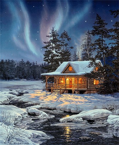 Анимированная открытка зимний вечер