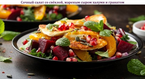 Название: Сочный салат со свёклой, жареным сыром халуми и гранатом