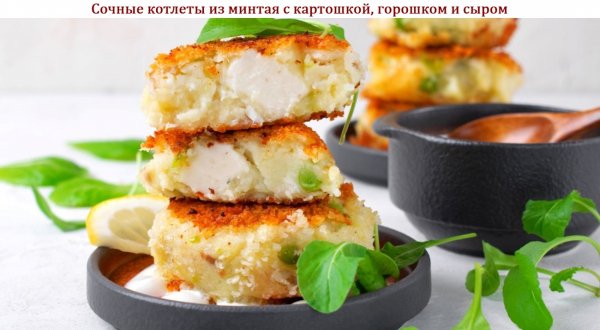 Название: Сочные котлеты из минтая с картошкой, горошком и сыром