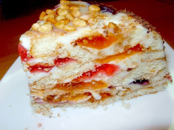 Описание: Вкусный, нежный легкий тортик. Минимум трудозатрат, для совсем ленивых можно все ингридиенты окромя крема просто купить)) Правда, описывать дольше чем делать :)) Итак..Торт "Битое стекло" [b]Ингридиенты: [/b]упаковка готовых бисквитных коржей (два нужно поломать кусочками, третий оставить целым)3 пачки желе разного цвета и вкуса, (или купить готовое, если времени мало)500гр сметаны1 ст. сахаражелатин 20 грванилин[b]Приготовление:[/b]Заранее приготовить желе, а если уже есть готовое, то хорошо, времени вообще мало займет[b]приготовить крем:[/b]замочить 20 гр желатина в 10 ложках холодной воды на 10 минут, затем распустить желатин на водяной бане до полного растворения крупинок, и пусть чуть приостынет, а тем временем взбить 500 гр. сметаны с 1 ст. сахара, всыпать ванилин затем немного сметанного крема, (буквально пару ложек) влить в желатин и не прекращая взбивать, тонкой струйкой влить эту смесь в крем.